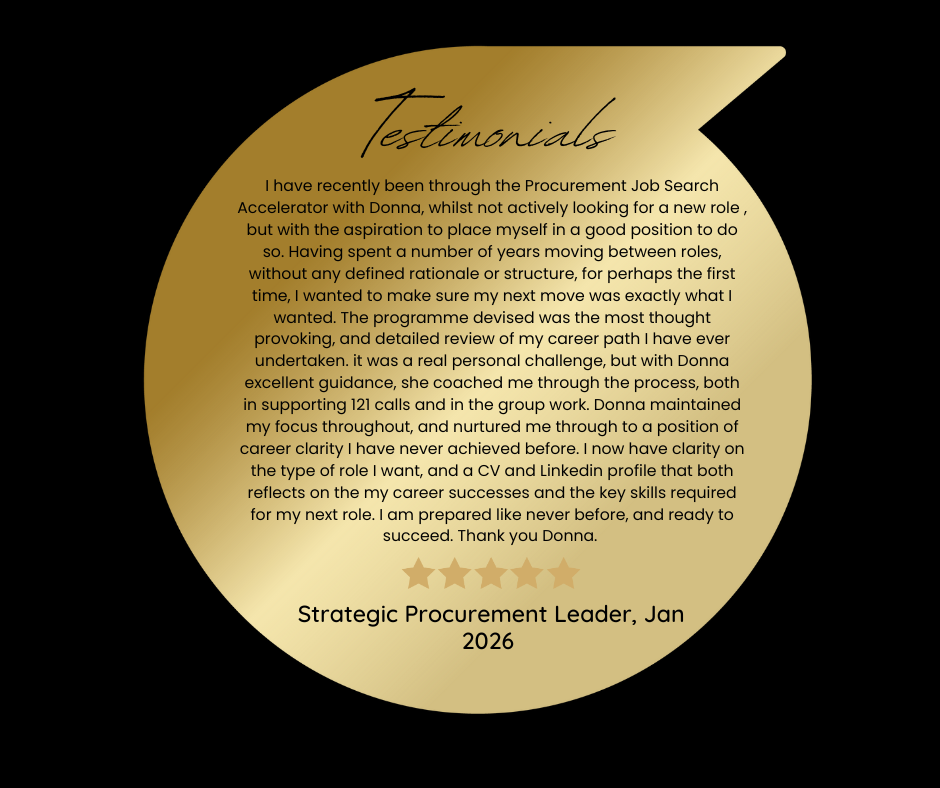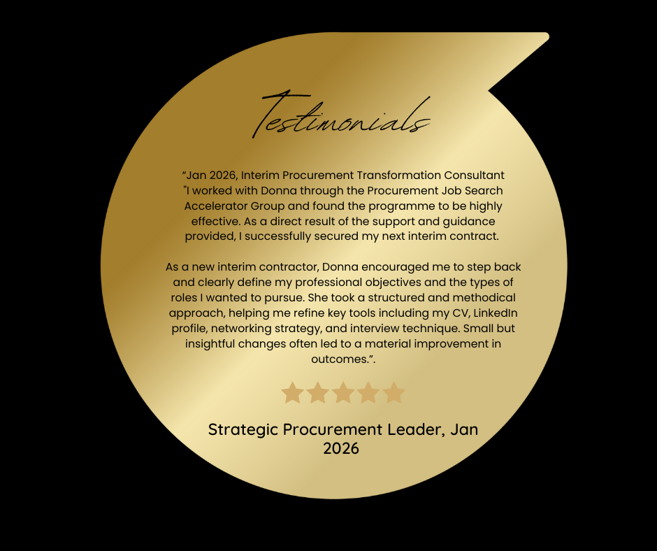 "I worked with Donna through the Procurement Job Search Accelerator Group and found the programme to be highly effective. As a direct result of the support and guidance provided, I successfully secured my next interim contract.